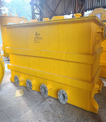 We manufacture contact moulded/hand lay-up tanks, filament wound tanks using advanced winding machines, and dual laminate tanks with thermoplastic liners such as PP, PVC, CPVC, ECTFE, PVDF, FEP, and TFM to ensure superior chemical resistance and durability.Prashant Plastic Industries LLP has successfully executed large-scale projects including an 80,000-liter rectangular tank (9200 x 3400 x 2800 mm), a 300 m³ PP/FRP vertical storage tank, and a 50,000-liter horizontal pressure vessel operating at 1 kg/cm². Our storage systems are supplied with complete accessories such as ladders, railings, level indicators, and customized fittings as per client requirements, delivering safe, reliable, and cost-effective industrial chemical storage solutions.